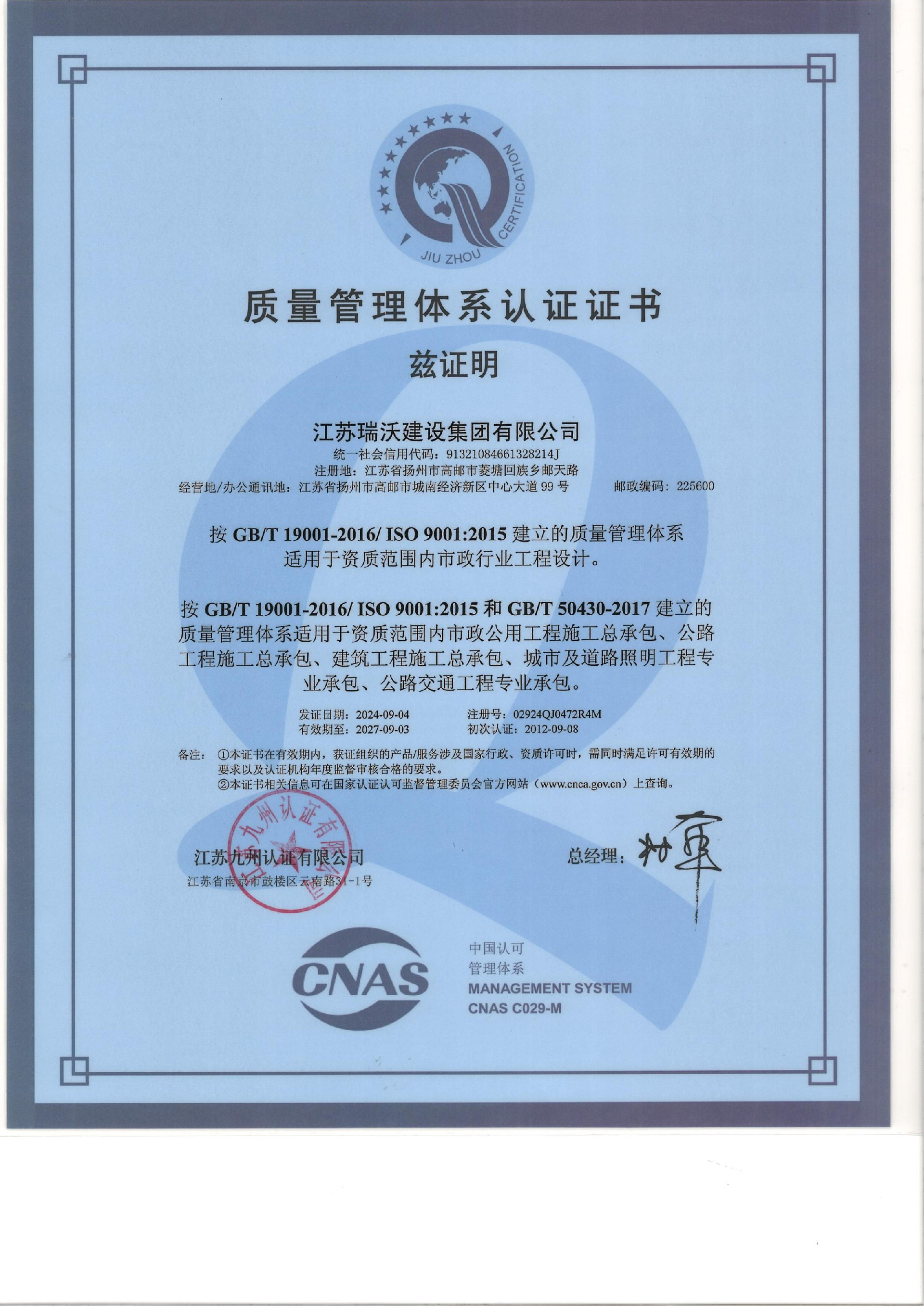 公司現擁有市政公用工程施工總承包特級,工程設計市政行業甲級,公路工程施工總承包一級、建筑工程施工總承包二級資質。目前公司下設弘瑞、天瑞、金遠、盛瑞等全資子公司,擁有江蘇欣瑞交通工程檢測有限公司,成立了揚州、南京、上海、北京、深圳、貴州、重慶、云南、青海、西藏、內蒙、大慶、寧夏、湖南、海外等分公司。公司按照現代企業管理模式,實行董事會負責制,下設董事會、監事會、董事長室、總經理室、副總經理室、總工室、綜合管理部、財務核算中心、市場發展部、工程管理部等部門。